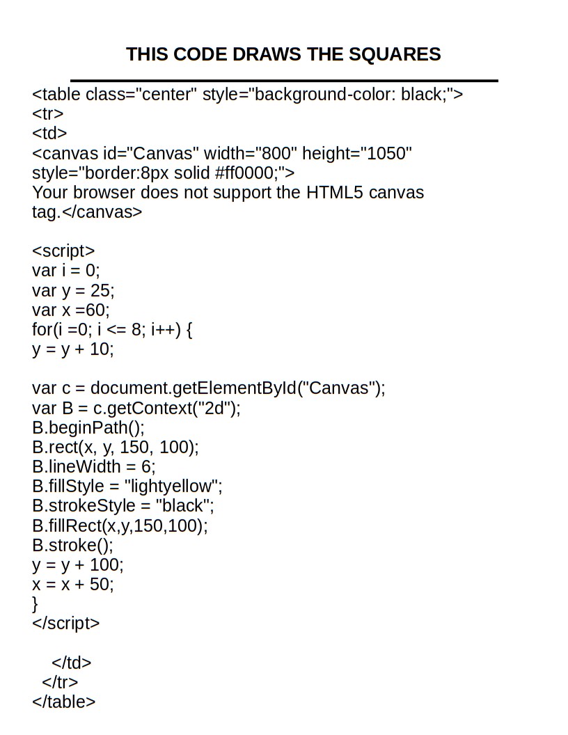 A JavaScript CANVAS WITH CASCADING RECTANGLES