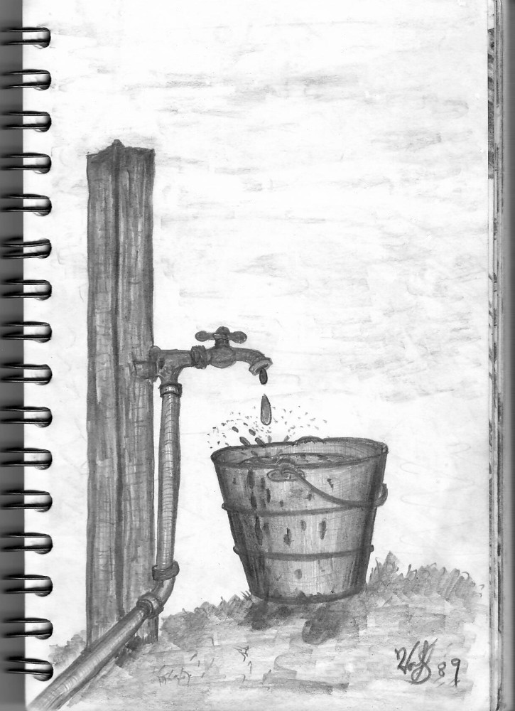 FAUCET DRIPPING INTO A BUCKET